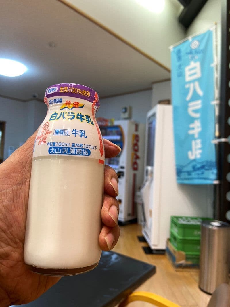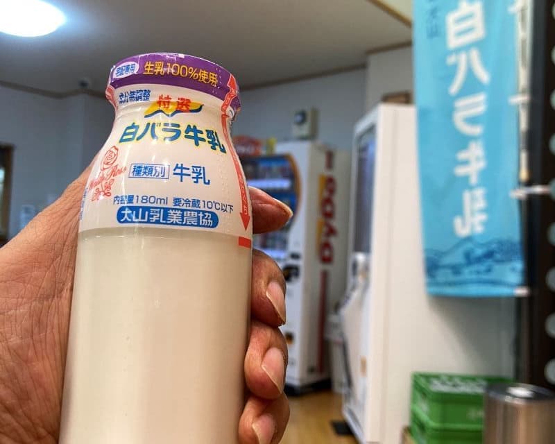 湯上りの定番、瓶入り白バラ牛乳